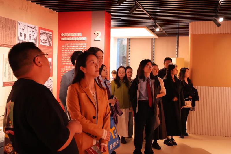 仪式结束后,党员们有序参观了革命烈士纪念馆与“四明丹心”纪念馆。在讲解员的娓娓叙述中,大家深入了解了浙东地区党组织从土地革命时期点燃“不熄火炬”,到抗日战争时期“喋血四明”、开辟敌后根据地,再到解放战争时期“枕戈待旦迎接解放”的艰苦卓绝历程。展馆中,朱镜我使用过的派克钢笔、铐过李敏的手铐、浙东抗日根据地发行的“抗币”等珍贵文物,无声诉说着那段烽火岁月中共产党人的忠诚与担当。烈士纪念墙上镌刻的一个个英名,展出的一封封烈士绝笔信,深深震撼了每一位党员的心灵。