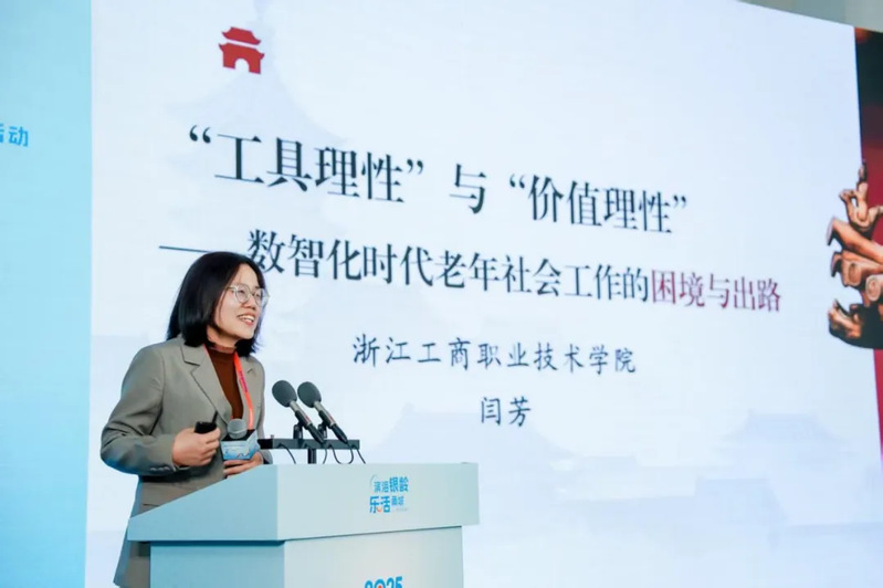 我院社会工作专业教师闫芳以“工具理性”与价值理性:数智时代老年社会工作的困境与出路为主题做了主旨发言。她指出,当前老年社会工作在数智化转型中面临“效率优先与人本关怀”“技术赋能与数字鸿沟”“隐私监控与自主尊严”三大核心张力,并强调单纯依赖技术工具可能导致关怀缺失与伦理风险。