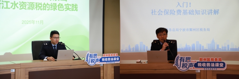 本次活动紧扣“赋能”与“实践”两大关键词。微学院特邀的两位实务专家——宁波市鄞州区税务局财产和行为税科叶茂与宁波市税务局青年才俊张成哲,分别围绕水资源税与社会保险费进行了“靶向式”宣讲。他们的讲解源于政策,落于案例,有效破解了学生们对税法“听得懂、不会用”的困境,将微学院的课堂延伸至税收征管的第一线。